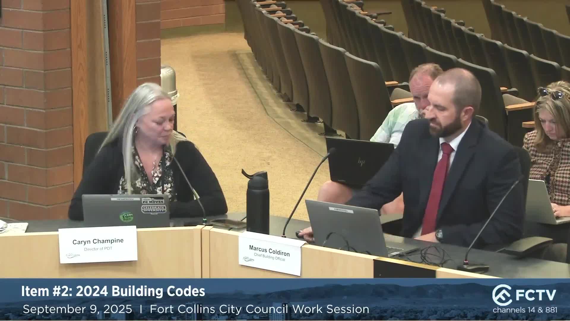 Ending Council thanked staff for convening a broadly based code review committee and for attempting to balance safety, housing and climate goals; members asked staff to document where Fort Collins exceeds state requirements, to quantify cost trade‑offs and to return with outreach and phased implementation plans.