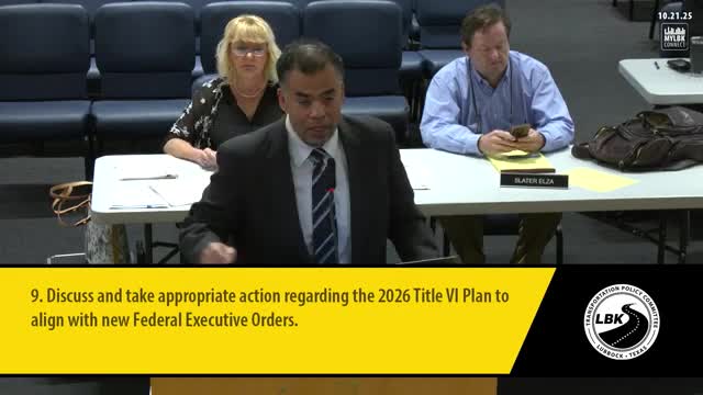 The Lubbock MPO adopted an updated 2026 Title VI plan Oct. 21 to align with new federal executive orders, replacing previous disparate-impact analysis requirements with a focus on intentional discrimination.