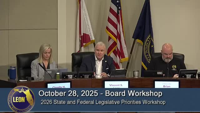 The Leon County Board of County Commissioners on Oct. 1 approved its 2026 state and federal legislative priorities, voting to oppose proposed statewide property-tax rollbacks, back restoration of passenger rail in North Florida, seek protections for election workers' personal information and add a set of gun-safety measures to the county's lobby agenda.