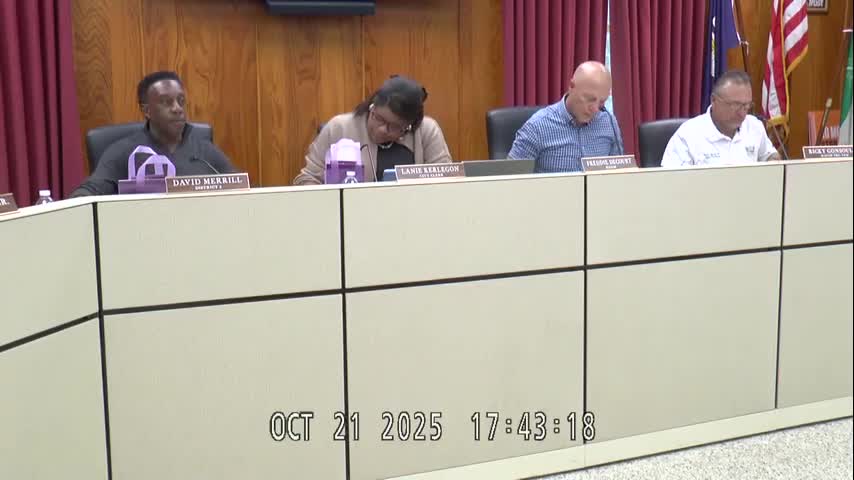 The council heard an update on a detention pond project. Staff said the project is near completion of core permit processes, with one remaining archeological study expected to take a few months; once cleared, about $3 million in funds would become available for construction. The mayor said he would return with a recommendation for a maintenance contract for larger canals and the city’s engineer will solicit bids for anticipated work.