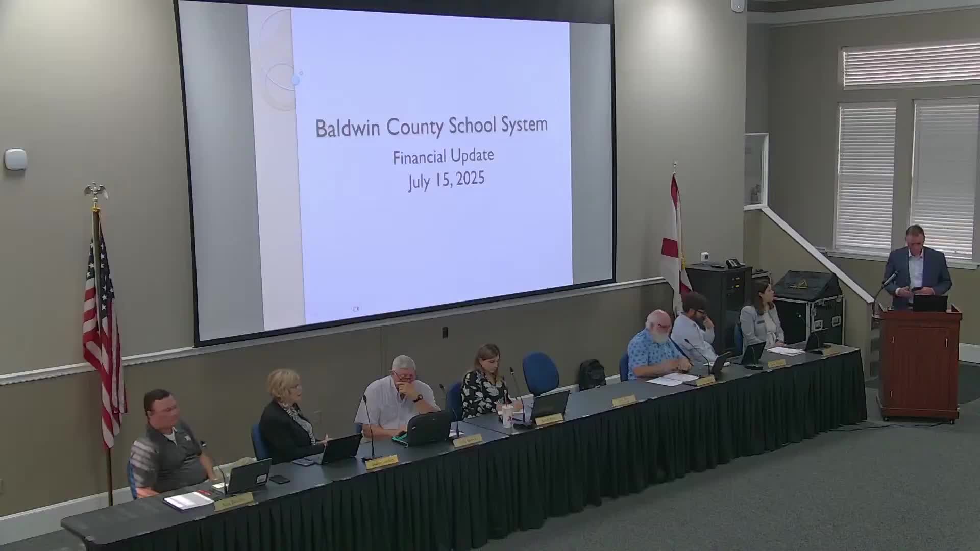 Baldwin County Public Schools budget staff told the school board at the July 15 work session that a freeze on federal education funds affecting fiscal 2026 could reduce district federal allocations by about $2.1 million based on fiscal 2025 awards.