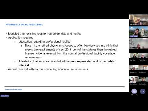 On the scope of practice, Costa said the commissioner's office favors a flexible approach that would allow retired physicians to practice within their area of expertise rather than be limited to a narrow list of specialties. Miriam, a DPH staffer who joined the presentation, said other states sometimes limit volunteer licenses to primary care or certain specialties, but that limitation would exclude specialty volunteers the department wants to engage.