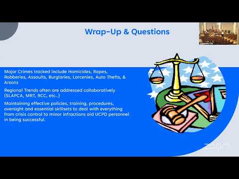 University City Police Chief Hampton presented a public safety update at the council study session Monday, reporting a multi-year decline in major crimes and outlining recruitment, training, volunteer programs and technology investments.