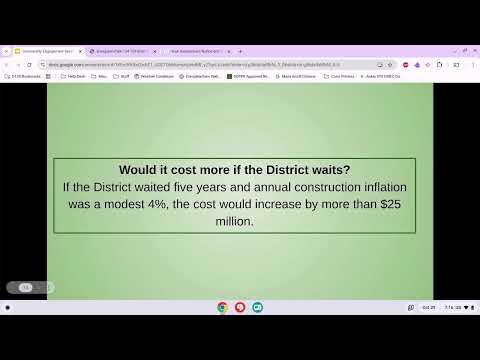 On finances, Eric Grossi, the district’s director of finance, reviewed FY24 revenue and expenditures and said the district currently holds more than six months of reserves — above the board’s stated goal. Jen, a consultant from PMTA, presented financing assumptions for a $109,800,000 bond issue repaid over a 30‑year schedule (the maximum statutory term for school bonds). Using an assumed true interest cost of about 5.22%, the district showed an estimated total debt service of roughly $224.1 million and an average annual debt payment of about $7.7 million. Staff demonstrated an online calculator and provided an example showing an estimated monthly tax impact of $91.77 for a home with a $300,000 assessed value; staff emphasized individual impacts vary and encouraged homeowners to use the district’s calculator or their most recent tax documents for precise estimates.