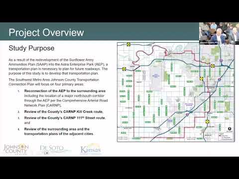 The recommendation follows a presentation by Kip Strauss, vice president at HNTB Corporation, who said the study used a Mid-America Regional Council/KDOT travel demand model and a 2060 low-intensity land-use scenario to forecast traffic as redevelopment at the former Sunflower Army Ammunition Plant (now Astra Enterprise Park, or AEP) proceeds. Strauss said the modeling showed the greatest traffic growth on a new north'south connector through AEP and on nearby corridors, with model runs indicating future daily volumes near the AEP connector as high as about 33,000 vehicles a day. "Traffic growth is greatest along north'south roads of the new corridor through AEP," Strauss said during the presentation.