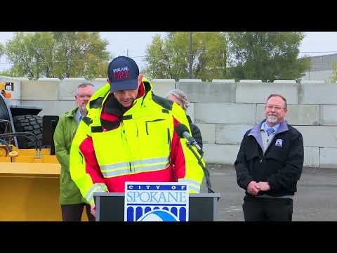 The City of Spokane street department on Tuesday outlined its winter snow-and-ice operations, highlighted a new, larger materials shed at the streets training site and described equipment and staffing changes meant to speed response during the Nov. 15–March 15 winter period. “Where we are standing is the foundation for a brand new, bigger, and better shed to to store our de icer material,” the mayor said, describing the purpose of the new structure.