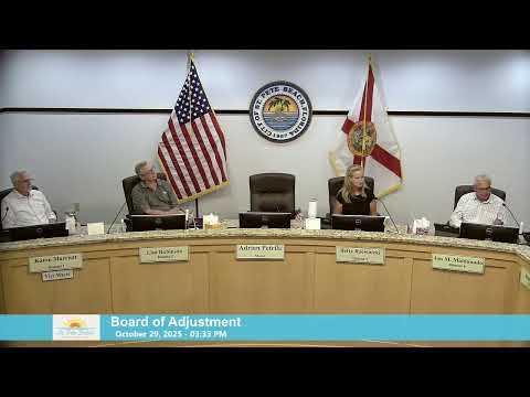 The Board of Adjustment approved a variance to extend an existing nonconforming dock at 2050 Boca Ciega Drive where dredging to deepen the channel was not feasible. Staff asked that dredging documentation be entered into the record; the board added a condition that lighting or reflectors be placed at the dock end.