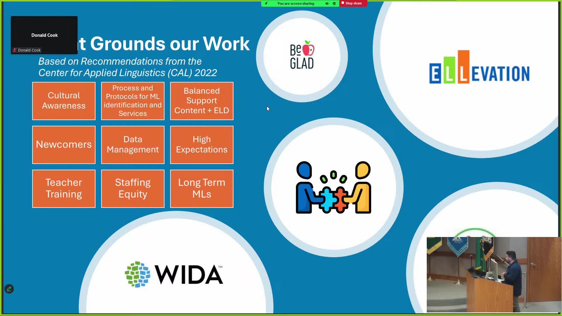 The presentation covered professional learning tied to the WIDA English language development standards, an initiative to roll out GLAD instructional strategies, and use of the Elevation data platform to track multilingual students' progress. Diaz and others said the district is increasing teacher and paraeducator staffing to meet rising enrollment.