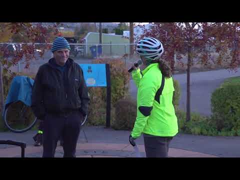 Catherine, a representative of Missoula in Motion, gave a brief safety briefing before the ride and told attendees to stay together, keep to the right on the trail and warn others when passing. She said Mayor Davis would lead the group and that "Ashley is going to be the caboose," and that volunteers were stationed at intersections to help manage traffic.