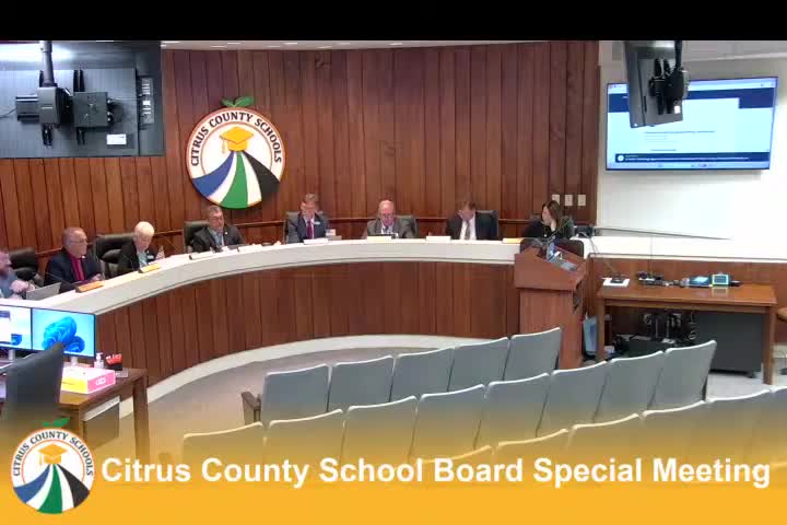 The Citrus County School Board discussed an anticipated change in its legal representation; existing board counsel said he will step down as general counsel and associate counsel plans to present a replacement contract for board review.
