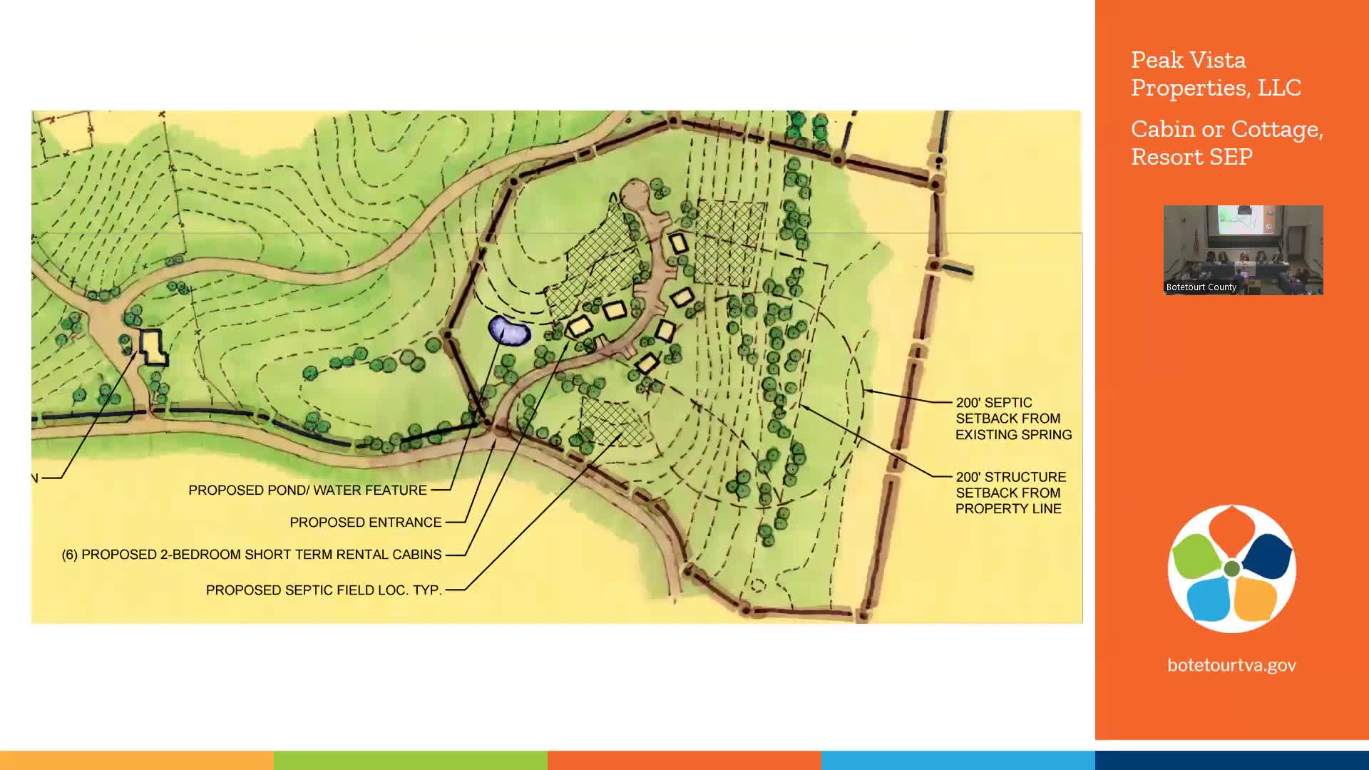Staff noted that, unlike the short‑term rental item earlier, this site has public utilities reported in the submittal (staff noted water service by Aqua Virginia and sewer by the authority referenced in the record), and that the proposed density would require R‑3 zoning. Mr. Lindsey also summarized public comments received before the hearing regarding access on Bonny View Lane and buffer concerns; the applicant responded by removing Bonny View Lane as an access point and increasing buffering in revised plans.