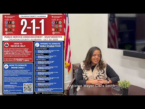 City of Anniston staff announced local drop-off sites, a United Way donation option and referral instructions for residents who may face food insecurity if SNAP benefits are suspended in November.