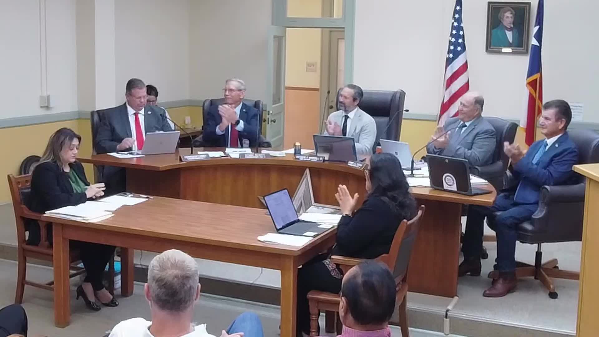 Provenance: Frank Massey public comment beginning at 00:36:28; Monica De La Cruz remarks at 00:29:49. "We have land, we have water, we have buildings, we have a willing county," Massey said (public comment).