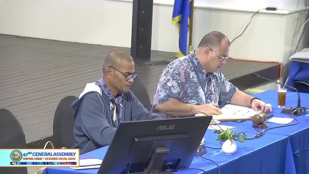 - APIL Resolution 42 GA 01: Honor and commend the Hon. Diego Tenorio Benavente (adopted, voice/roll call). - APIL Resolution 42 GA 02: Establish special committee to assess and recommend lowering rising fuel costs (adopted). - APIL Resolution 42 GA 03: Request FDIC‑insured banks in Micronesia to review loan interest rates (adopted). - APIL Resolution 42 GA 04: Urge member states to cooperate against illegal drugs; amended to transmit copies to specified U.S. federal officials including DHS and DEA (adopted as amended). - APIL Resolution 42 GA 05: Request collaboration with U.S. Department of the Interior (referred in transcript as Department of War by speakers) on invasive species (adopted). - APIL Resolution 42 GA 06: Request APIL president establish and appoint members to a task force on nuclear‑fallout impact and regional advocacy (adopted; see separate coverage). - APIL Resolution 42 GA 07: Request extension of Guam/CNMI visa waiver to include Kiribati (adopted as amended to update federal agency names). - APIL Resolution 42 GA 08: Advocate U.S. federal assistance to reevaluate fuel supply routes (adopted). - APIL Resolution 42 GA 09: Urge Japan and the United States to provide assistance to FSM (Chuuk) for Rio de Janeiro shipwreck oil‑spill mitigation (adopted). - APIL Resolution 42 GA 10: Request the Micronesian Shipping Commission review policies to lower ocean freight costs (adopted). - APIL Resolution 42 GA 11: Urge United Airlines to engage with APIL transportation officials to analyze airfare and cargo pricing and explore ways to reduce costs (adopted). - APIL Resolution 42 GA 12: Request RMI/Palau/FSM presidents take action with U.S. postal officials to restore mail/package routing to the U.S. (adopted with technical amendment to name the U.S. Postal Service). - APIL Resolution 42 GA 13: Amend APIL bylaws (adopted; effective date amended to 2025‑12‑01; additional clauses require current officers to execute necessary documents before term end; rules to permit virtual meetings for specified board votes not including the annual board/general assembly). - APIL Resolution 42 GA 14–20: Miscellaneous measures including support for a Micronesian regional education summit, expression of appreciation to hosts and sponsors, Medicaid extension appreciation and other administrative matters (all adopted).