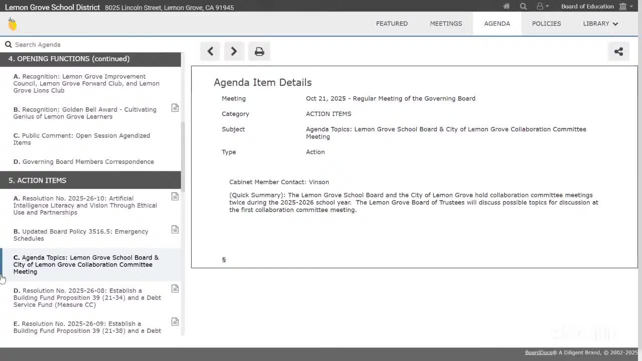 Trustees preparing for a joint meeting with the City of Lemon Grove asked staff on Oct. 21 to emphasize several community-safety and partnership issues.