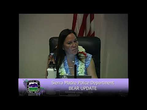 Council members praised volunteer outreach by Bear Lovers of Sierra Madre and described residents' mitigation efforts—such as installing window grates or bars—to prevent break-ins. They also said the city has limited authority over wildlife removal, which Fish and Wildlife regulates, and discussed pressing state officials for additional staffing and funding. Council members announced plans for a follow-up public update in August, a mayoral workshop of neighboring cities on Aug. 8 to coordinate regional response and funding, and a request to add a standing agenda item on bears to future meetings.