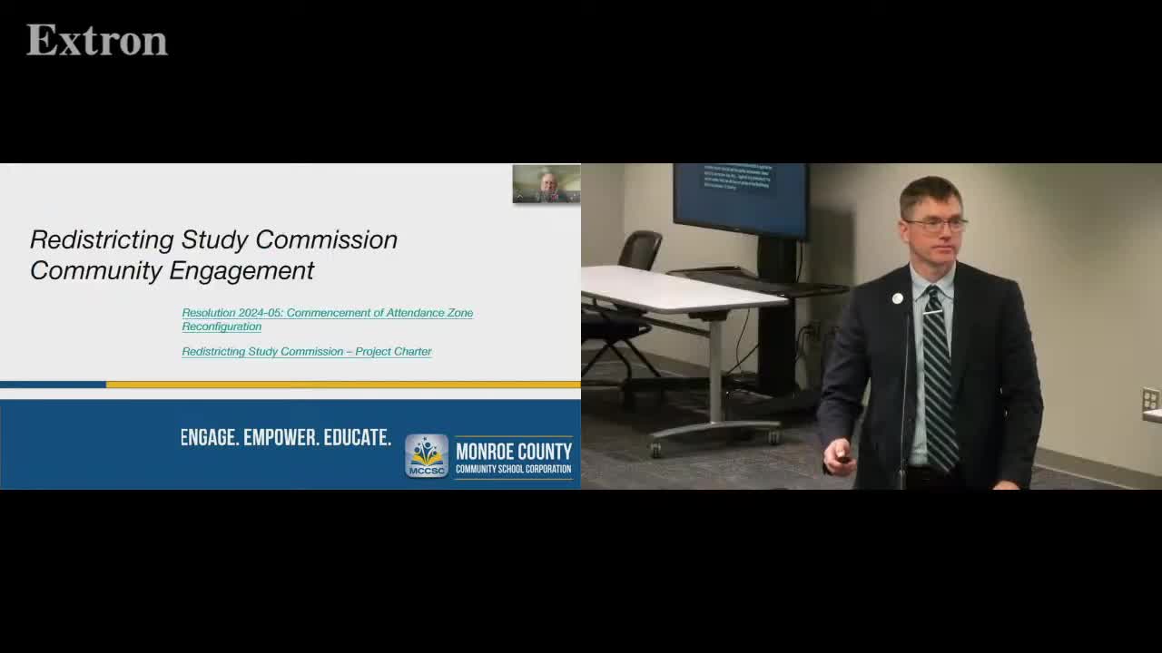 The Redistricting Study Commission told the Monroe County Community School Corporation board on July 8 that it has evaluated 19 redistricting scenarios and will refine the strongest maps this fall.