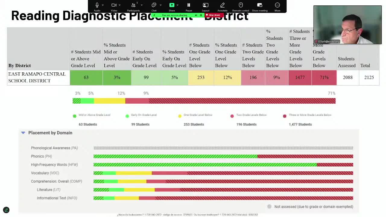 East Ramapo presents diagnostic data showing majority of middle-schoolers below grade level, plans audits and coaching