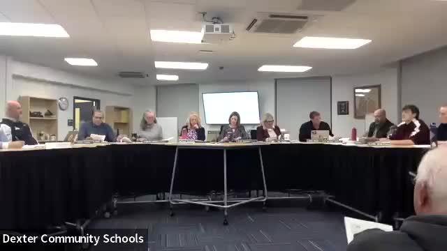 The Dexter Community School District Board of Education approved construction of a restroom/storage building at the Twin Turfs and authorized purchase of stadium lighting fixtures, directing staff to proceed with contracting and bid packages.