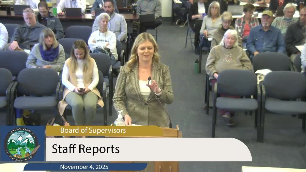 Health and Human Services Director Annie Hockett briefed the board Nov. 4 on possible delays to CalFresh (SNAP) benefits caused by federal funding lapses and recent court rulings; county recorded 6,660 CalFresh recipients as of Oct. 31, 2025 and notified residents of local food resources.