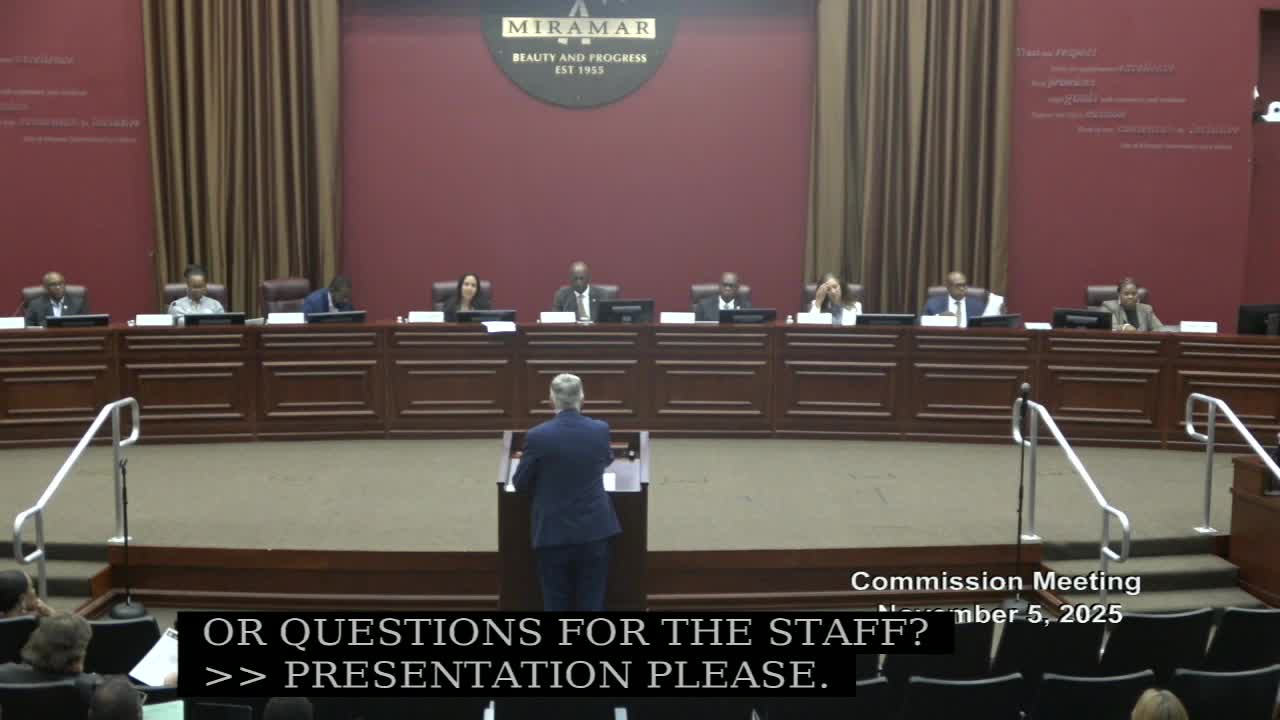 The Miramar City Commission took the following formal actions on Nov. 5. Items are listed by agenda number, short description and outcome.