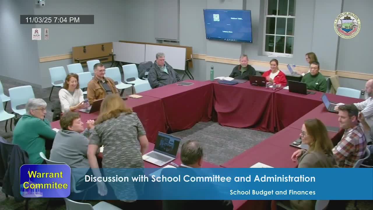 Warrant Committee Chair Jay Fondling opened a joint meeting with the School Committee on Nov. 3 and said the purpose was to "hear the plan for the budget and get us kicked off right for the year." Interim Superintendent John Fallon and Assistant Superintendent for Finance Katie Blake then presented the district's FY27 budgeting process, a timeline for public review and five district teaching-and-learning priorities that will guide resource decisions.