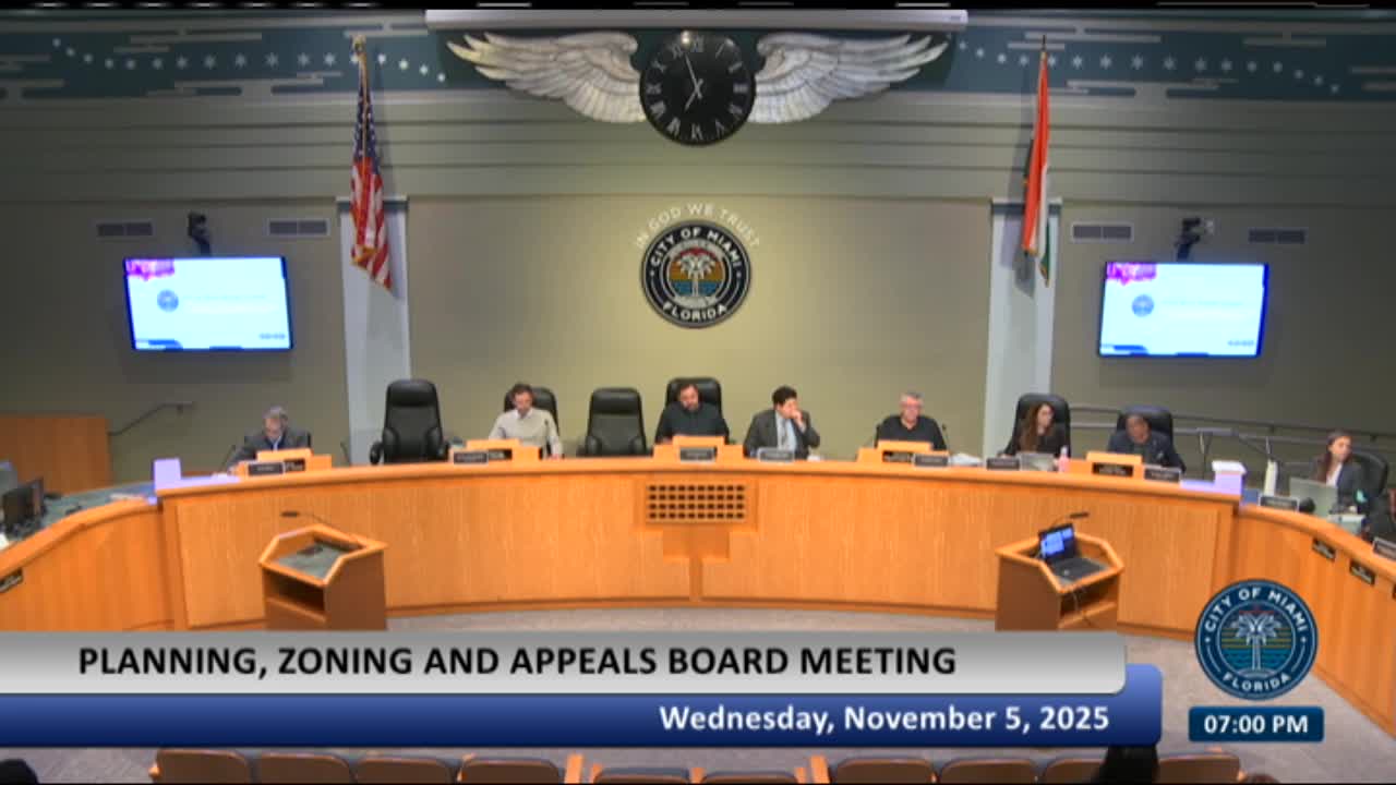 The Miami Planning, Zoning & Appeals Board voted to indefinitely defer four city‑initiated rezoning and future land‑use items affecting the West Grove, citing staff plans to conduct community outreach before the items return to the board.