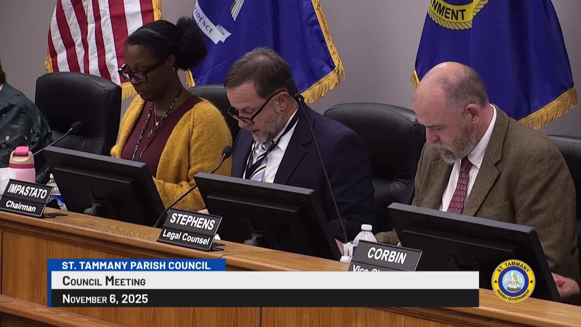 Quotes attributed in this story come from the public transcript of the St. Tammany Parish Council meeting on Nov. 11, 2025, as recorded in the meeting minutes and public comments.