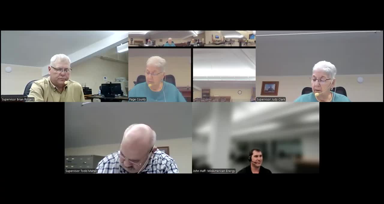 A MidAmerican Energy representative told Page County supervisors the county wind project is nearing completion: every turbine has been installed and the project is moving toward full energization.
