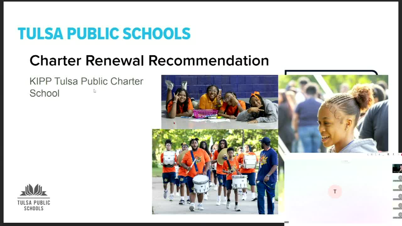 The Tulsa Public Schools Board of Education voted to approve three-year charter renewals for KIPP Tulsa College Preparatory (grades 6—) and KIPP Tulsa University Preparatory (grades 9—2), authorizing both schools to operate from July 1, 2026, through June 30, 2029.
