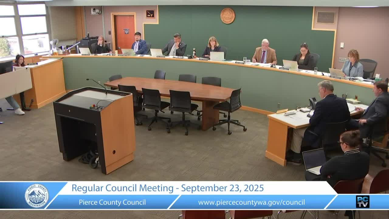 Pierce County Council on Sept. 23 approved two related resolutions moving tax-foreclosed parcels out of county stewardship in separate processes: public auction and private negotiation for governmental uses.
