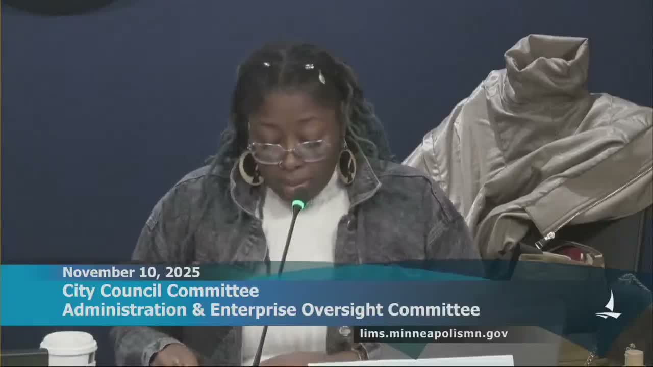 Minneapolis Administration and Enterprise Oversight Committee Chair Robin Wensley on Tuesday added a gift acceptance request from the Public Rights Project to the committee's agenda and then moved to approve a 25-item consent agenda that included the gift, multiple contract amendments and several legal settlements.