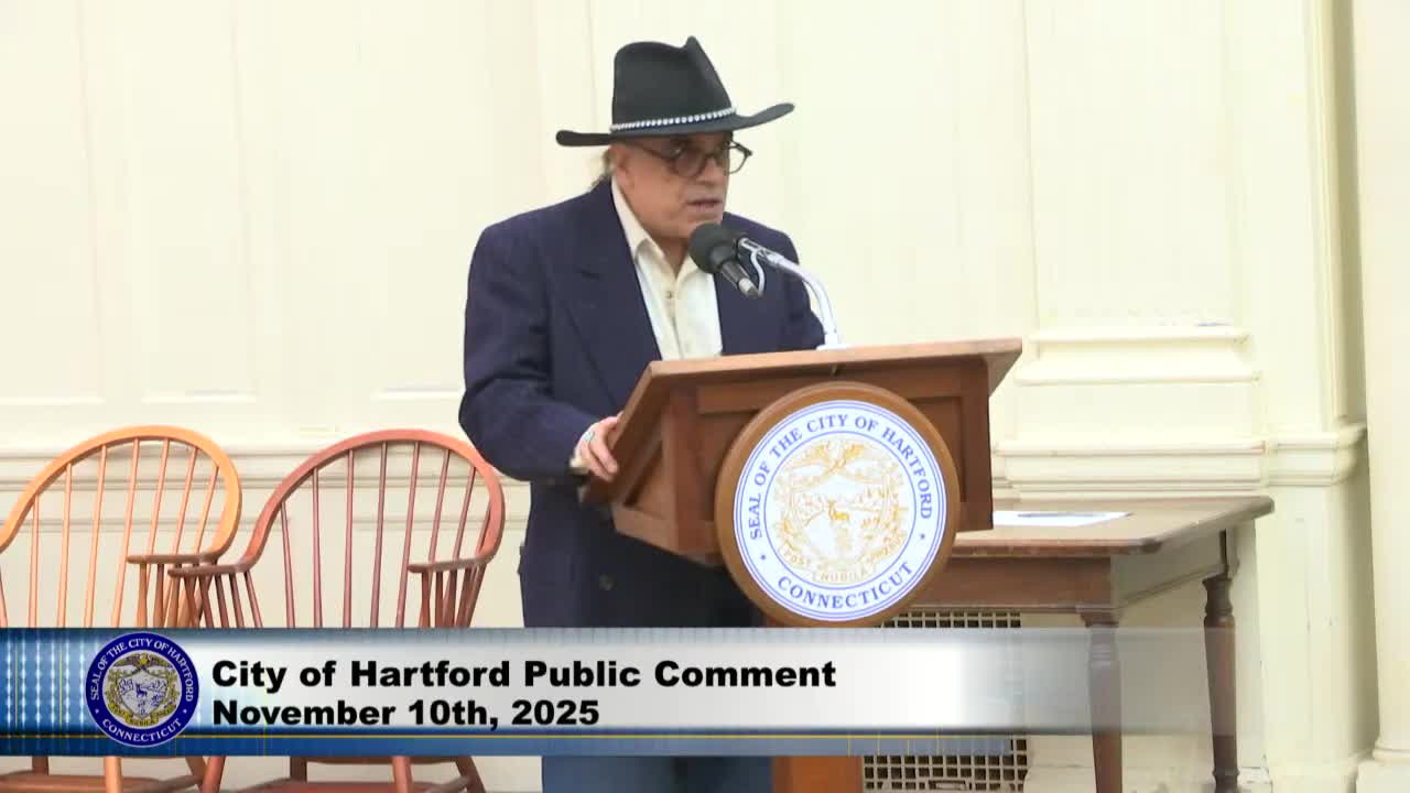 A public commenter told the council that Hartford's long‑standing practice of sending large hook‑and‑ladder trucks to many 911 calls wastes money and shortens apparatus life, and urged the city to consider smaller four‑wheel‑drive or medic vehicles used by neighboring towns as an alternative.