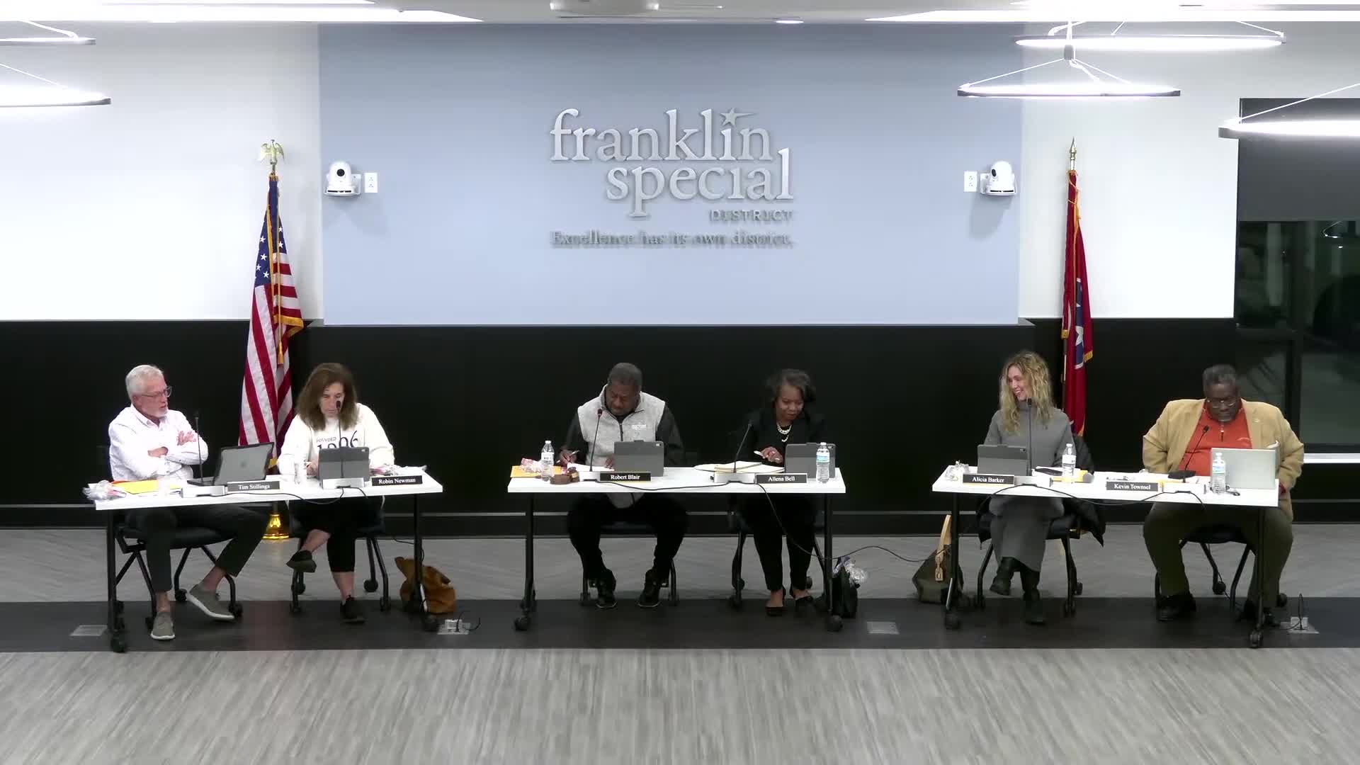 Franklin SSD's finance and administration office reported a small sales tax uptick and the director provided district scheduling and event updates.