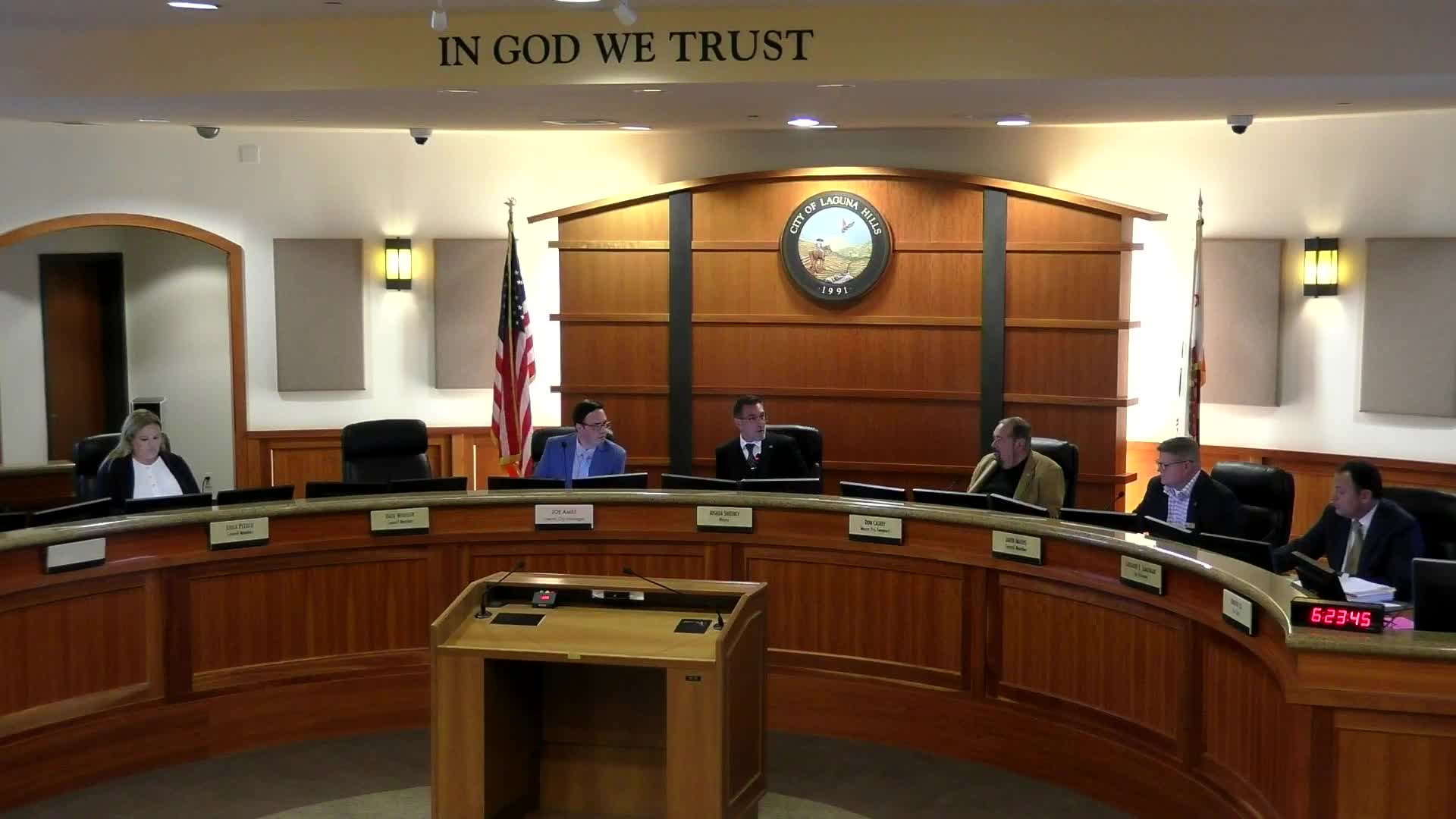 City staff presented a license agreement with Cityside Fiber that would permit the company to pull backbone fiber optic cable through existing traffic‑signal interconnect conduits rather than trenching arterial streets. Interim City Manager Robert Ames and staff said the approach reduces construction and pavement impacts on major corridors (Alicia Parkway, La Paz Road, Moulton Parkway and Paseo De Valencia) and used micro‑trenching in residential areas (2‑inch wide by 18‑inch deep) as a contrast.