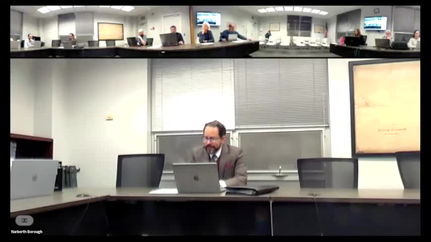 Planning staff and consultants presented a 125‑page draft reorganizing Narberth’s zoning ordinance around zoning districts, consolidated building‑type standards and a single uses chart; the draft is intended to be policy‑neutral, with a separate list of substantive amendments for future council consideration.