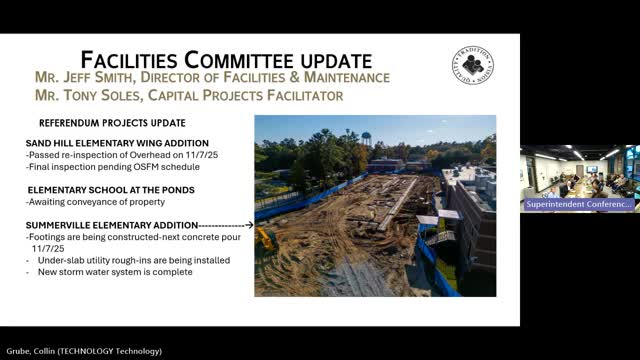 Facilities staff updated the committee on the district’s referendum projects and urged the board to press for timely starts to avoid inflation-driven cost increases.