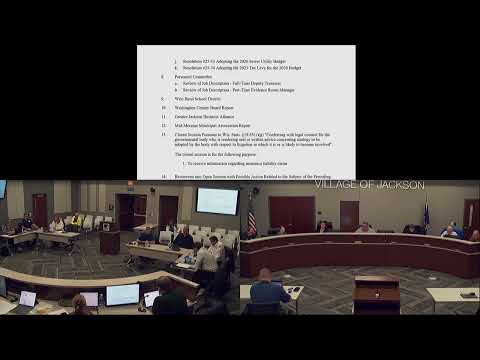 The Village of Jackson board adopted the 2026 general fund, water and sewer utility budgets, a 2025 tax levy for the 2026 budget, and an 18% sewer rate increase effective Jan. 1, 2026. Board members said rate changes reflect user fees and capital needs; the budgets include capital project funding.
