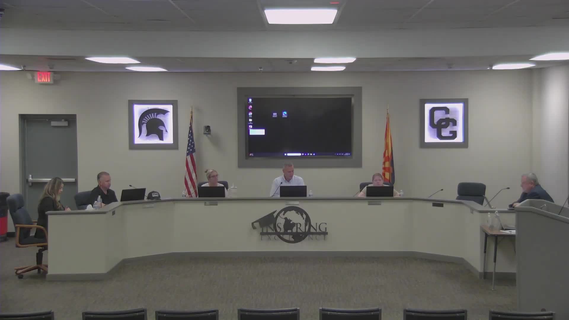 At its meeting, the Casa Grande Union High School District governing board advanced routine business: a first reading of ASBA policy advisories, acceptance of community donations to district programs, and approval of the consent agenda.