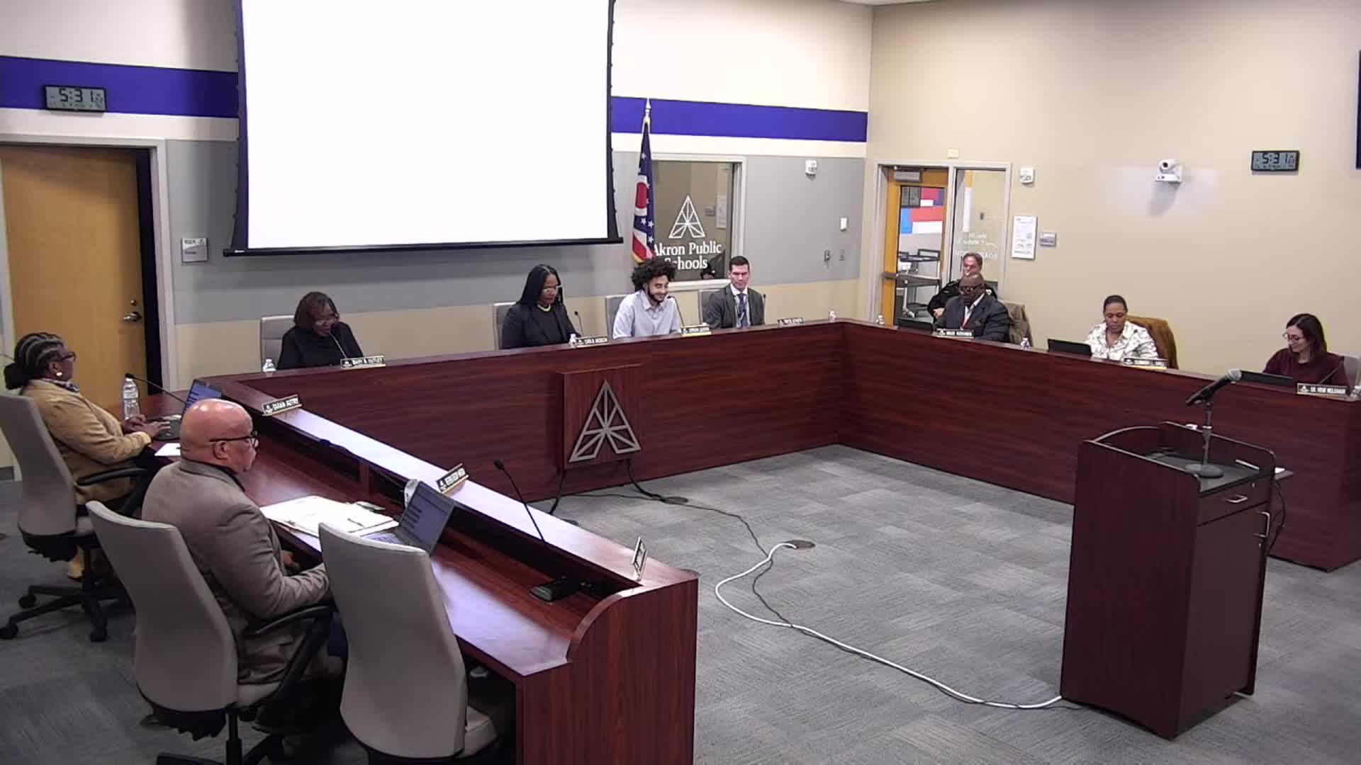 The Akron Board of Education opened its Nov. 3 meeting with recognitions and public comment that highlighted community fundraising and requests to preserve district history.