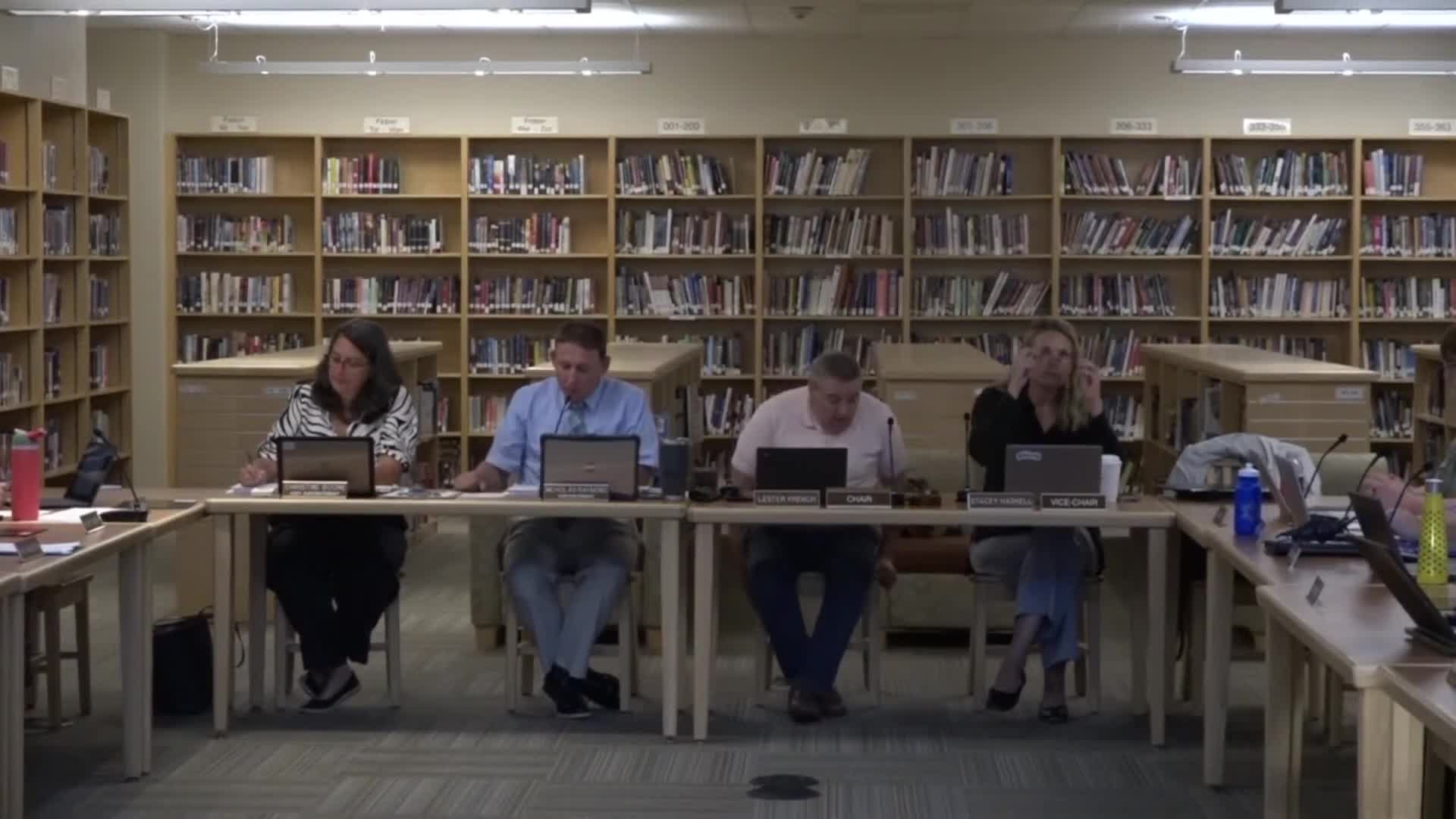 The board announced resignations — athletic director Barry Terrell and teacher Mikaela Libby — and three hires: Cynthia Sturm (school social worker, $65,802.02), Becky Renaud (grade 6 math teacher, $67,551.98), and Gerald Gear (grade 3 teacher, $81,260).