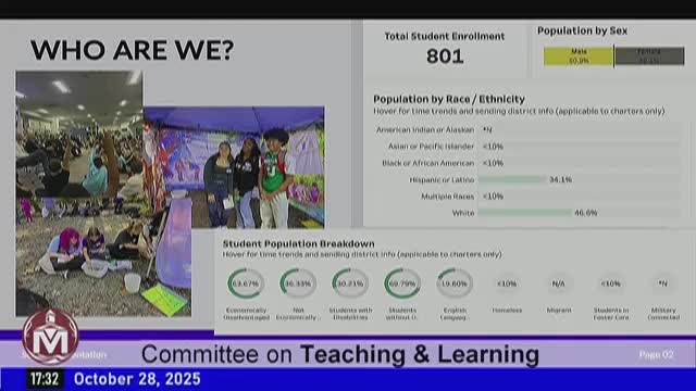 Parkside Middle School told the Teaching & Learning Committee it serves roughly 800 students, about 25% with identified disabilities, and outlined stepped attendance outreach, Tier 1 MTSS behavior goals and a targeted push to improve writing proficiency by spring 2026.