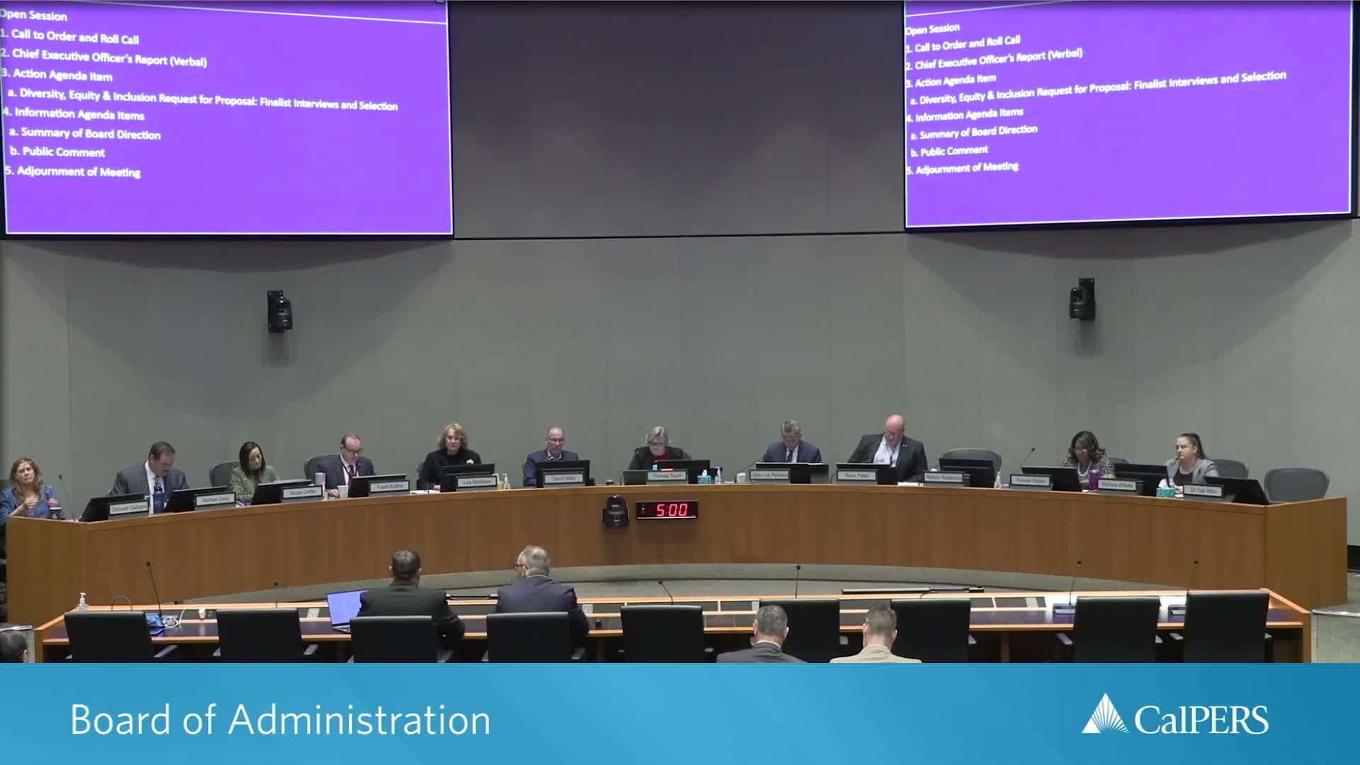 The California Public Employees Retirement System board voted unanimously to award a DEI consulting contract to Shannon Kelly Ray Consulting LLC after interviewing six finalists, combining interview and preliminary scores and applying small-business preferences. Staff will begin contract negotiations with the top-ranked firm.