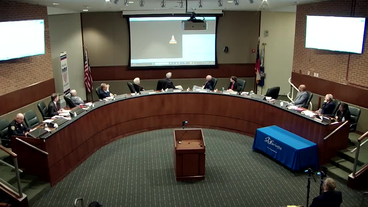 Marietta's agenda‑review session included a presentation on a new police training facility on Sawyer Road and a discussion of how state training changes are affecting staffing timelines.