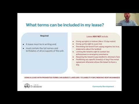 "The RLTO was updated on 01/01/2025," Philip Devon, staff attorney at the Metropolitan Tenants Organization, said during the presentation. Devon described the ordinance as "essentially the tenant's bill of rights in Evanston" and said the changes align the city with recent Cook County and Chicago updates while adding locally tailored protections.