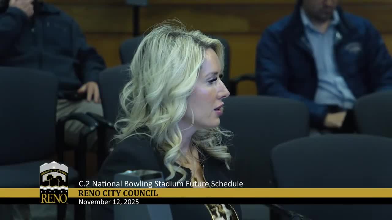 The Reno City Council unanimously approved a five‑year amendment to the RCVA’s contract with the United States Bowling Congress, extending tournament dates and changing fees and revenue sharing while removing an automatic liquidated‑damages clause.