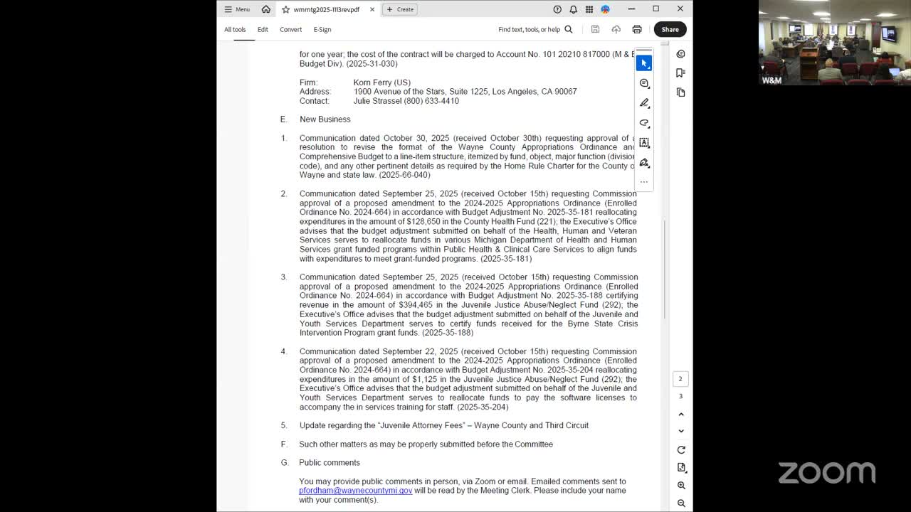 Kamal Kapooroo, finance director for Management and Budget, presented a year-end reallocation in the county health fund intended to reconcile public-health grant accounts. Members had no substantive questions and the committee moved the item forward.