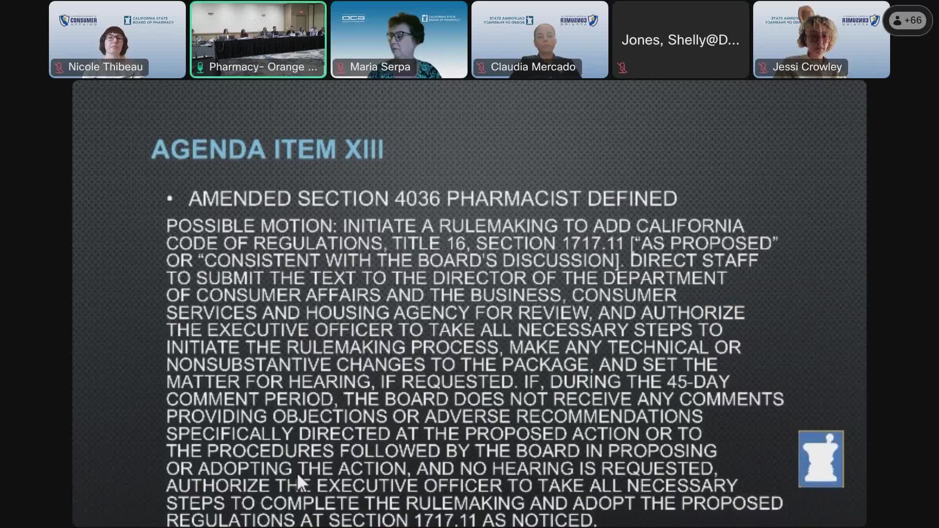 The Board of Pharmacy voted to approve a policy statement endorsing a standard‑of‑care practice model and recommended regulatory amendments to CCR sections 40.51 and 40.52. Board materials state the changes are intended to transition provisions to a standard of care practice model for pharmacists providing health care services in specified preventative health areas.