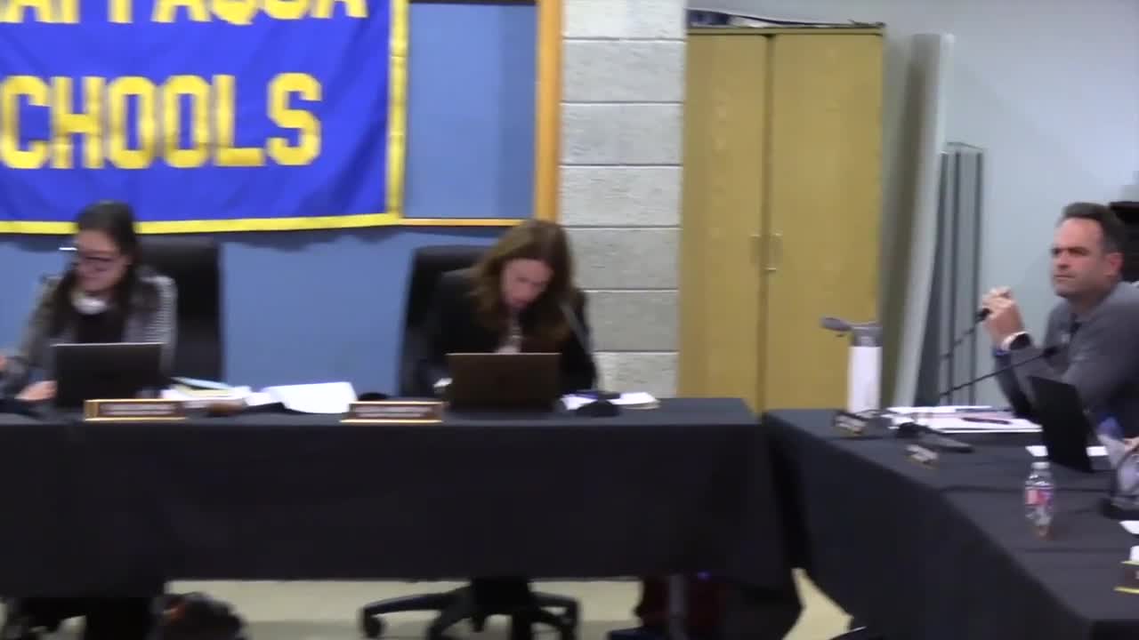 Student board member Matthew told the board the student governments across six schools will run a food and clothing drive called "Stuff the Bus" Nov. 17-21, with collections at each school and district office and student-led delivery to the Community Center of Northern Westchester.