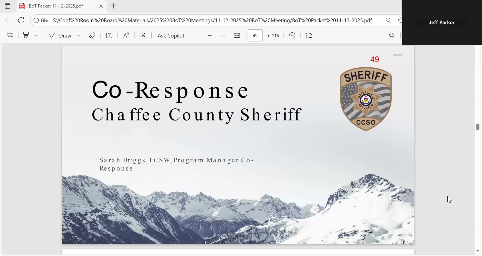 Trustees of the Town of Buena Vista heard on Nov. 12 from county co‑response clinicians seeking $61,000 in the town’s draft 2026 budget to help sustain a behavioral‑health co‑response unit that pairs clinicians with deputies to respond to mental‑health and substance‑use calls.